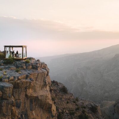 Perché à plus de 1 800 mètres, sur les hauteurs arides d’Al Hajar, la chaîne montagneuse la plus spectaculaire d’Oman, l’Alila Jabal Akhdar forme un belvédère de luxe dont l’architecture contemporaine s’est inspirée des anciennes forteresses du sultanat. Pierres et bois locaux s’harmonisent parfaitement à cet environnement naturel préservé, offrant un cadre de séjour à la fois majestueux et intimiste. Chaque expérience proposée par cet hôtel haut de gamme est exceptionnelle, qu’il s’agisse d’observer les étoiles dans un ciel incroyablement pur, de plonger dans la piscine à débordement, improbable d’élégance dans ces lieux désertiques, ou de diner en tête à tête à flanc de montagne, le regard happé par les profondeurs d’un canyon vertigineux… Unique !