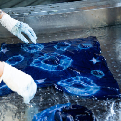 Plus au sud, dans la région de Chikugo, le Kurume Kasuri fascine par la poésie de ses motifs, dont les formes apparaissent avant même le tissage. Fruit d’un patient travail de nouage et de teinture des fils, chaque étoffe révèle un dialogue subtil entre talent, maîtrise et rigueur technique. Cet artisanat textile, autrefois destiné aux vêtements du quotidien, connaît aujourd’hui un nouvel élan, entre respect des traditions et réinterprétations contemporaines. Des maisons historiques accueillent les visiteurs pour leur faire découvrir les secrets de fabrication du kasuri, depuis la préparation minutieuse des fils jusqu’au moment presque magique où les motifs se révèlent au tissage. Une immersion rare dans un artisanat vivant, profondément lié à son territoire et à son rythme naturel.