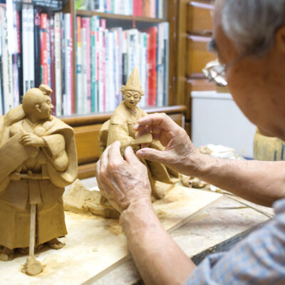 Les Hakata Ningyō séduisent par la précision de leurs expressions, la richesse de leurs postures et l’élégance de leurs détails, souvent inspirés du théâtre traditionnel, de figures historiques ou de scènes de la vie quotidienne. Chaque pièce raconte une histoire, capturant une émotion ou un instant suspendu. Au-delà de l’acquisition de ces œuvres emblématiques, la préfecture de Fukuoka propose une approche immersive de cet artisanat. Dans le quartier historique de Hakata, le Hakata Machiya Furusato-kan offre la possibilité de s’initier à la peinture des poupées lors d’ateliers accessibles aux visiteurs, une manière privilégiée d’appréhender les codes esthétiques et la minutie de cet art populaire raffiné. Plus confidentiellement, certaines maisons d’artisans perpétuent la transmission des gestes fondateurs au sein de leurs ateliers, invitant les curieux à découvrir les différentes étapes de fabrication, du modelage à la mise en couleur, dans un dialogue direct avec les maîtres artisans.