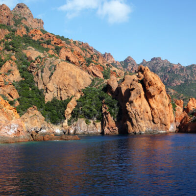 Les 35 chambres et suites déclinent un luxe feutré, ancré dans la matière. Boiseries claires, enduits à la chaux, étoffes naturelles et céramiques artisanales composent un univers à la fois brut et raffiné. Certaines suites s’ouvrent sur des terrasses privatives dominant la baie, d’autres s’enfoncent dans le maquis, dans un jeu d’ombres et de lumière qui évoque la quiétude des maisons corses.