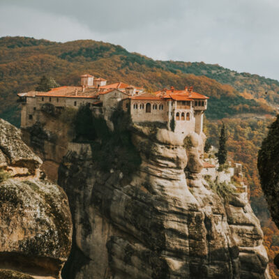 Delphes, blottie sur les pentes du mont Parnasse, s’élève en gradins, serpentant au fil d’un chemin pavé jalonné de vestiges, d’inscriptions antiques et de monuments majestueux. L’ascension du long chemin sacré révèle l’agencement unique du sanctuaire, conçu non pour la simple contemplation, mais pour magnifier l’élévation spirituelle. Dans l’Antiquité, c’est ici que les cités grecques venaient consulter l’avenir. L’oracle d’Apollon, énoncé par la Pythie, incarnait alors le centre symbolique, politique et religieux du monde grec. En gravissant le site, du portique des Athéniens au temple d’Apollon, du théâtre au stade, se dessine une architecture mentale : une orchestration sacrée inscrite dans le paysage. La montagne sculpte l’expérience. À son sommet, le regard s’ouvre sur la vallée d’oliviers, vaste tapis végétal dévalant jusqu’au golfe de Corinthe. Le musée de Delphes, voisin du sanctuaire, recèle des trésors : le Sphinx des Naxiens, les métopes du trésor de Siphnos, des statues fragmentées de héros, et surtout l’Aurige de Delphes, silhouette de bronze à la tunique délicatement plissée, aux yeux d’émail, chef-d’œuvre d’une sobre majesté. À une vingtaine de kilomètres au sud, la route plonge vers le golfe de Corinthe, révélant Galaxidi, cité maritime du XIXᵉ siècle. Elle cultive un charme discret, entre son port intimiste, ses demeures basses et ses jardins secrets. Galaxidi reste un refuge paisible, où l’âme marine se lit dans l’alignement des maisons de capitaines, tournées vers la mer. Plus au nord, le paysage bascule. La route traverse plaines fertiles et collines effacées, jusqu’à heurter une frontière géologique vertigineuse. Surgissent alors les Météores, spectaculaires colonnes de roche jaillies vers le ciel, sculptées par des millénaires d’érosion. Ces aiguilles de grès dessinent une topographie sacrée, d’une beauté à couper le souffle. À leur sommet, dès le XIVᵉ siècle, furent érigés des monastères byzantins, à la fois havres spirituels et refuges contre les invasions. Vue d’en bas, la silhouette de ces monastères semble irréelle. Ils ne prolongent pas la roche, ils s’en détachent, semblant flotter entre ciel et terre. Construits à flanc de falaise, jadis accessibles par cordes ou filets, ils étaient conçus pour décourager toute intrusion. Même aujourd’hui, malgré la présence d’escaliers modernes, l’accès demeure exigeant. Chaque visite se mérite : elle impose une montée, un effort, presque un rituel. Parmi ceux encore en activité, le monastère de la Grande Météore, fondé au XIVᵉ siècle, est le plus vaste et le plus prisé. Son catholicon dévoile de somptueuses fresques post-byzantines, tandis que sa cuisine, restée intacte, semble figée dans le temps. La vue y embrasse l’ensemble du massif. D’autres, tels Varlaam ou Roussanou, accueillent également les visiteurs. Les plus petits, comme Ypapanti, suspendu à flanc de falaise, préfèrent rester discrets, hors des sentiers battus. Tous vivent au rythme de leurs offices, des saisons et des jours d’ouverture. Kalabaka, nichée au pied des Météores, constitue une étape élégante pour partir à la découverte de ces joyaux monastiques. La ville propose une sélection variée d’hébergements, allant de charmants petits hôtels familiaux à des établissements plus haut de gamme, souvent dotés de panoramas à couper le souffle sur les formations rocheuses.