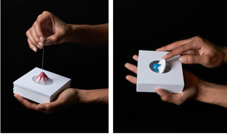 Selon elle, l’hospitalité de demain devra s’appuyer sur tous les sens pour créer des souvenirs inoubliables, faisant écho à une tendance de la société : le besoin de personnalisation, le refus du standard, de l’aseptisé. Durant une année, les élèves de l’ENSCI ont donc repensé l’hôtellerie comme une expérience totale qui s’inscrit dans le corps : le goût avec le projet « Offrande », la vue avec le projet « Discos de fuego », le son avec le projet « Caillou » ou bien l’odorat avec le projet « L’entre-soi ». Le collectif a également été abordé par des travaux dédiés aux salariés comme à l’identité personnelle du voyageur. Mais le point commun de ces 12 projets est bien de surprendre, car l’inoubliable repose sur un effet de surprise qui fait partie de l’art de voyager, comme l’écrivait Stefan Zweig…