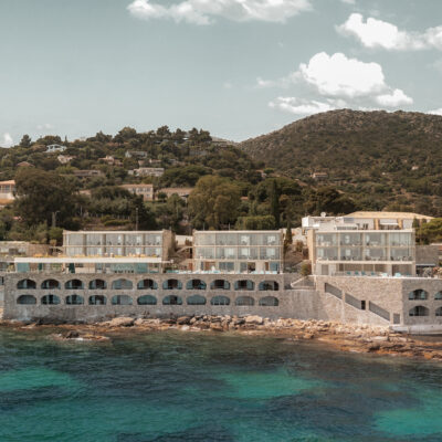 Amarré dans la baie d’Aiguebelle, l’Hôtel Les Roches évoque un yacht de pierre brute et de terrazzo, un belvédère grand ouvert sur la mer, les îles du Levant, de Porquerolles et de Port Cros. Ce 5 étoiles, qui a jeté l’ancre à flanc de colline, fut autrefois le refuge de célébrités comme Thomas Mann, Humphrey Bogart ou Lauren Bacall, une adresse iconique qui s’est depuis réinventée en annexe balnéaire des Barmes de l’Ours, l’une des adresses les plus recherchées de Val d’Isère. Redessiné par Jean-Baptiste Pietri, l’hôtel compte une trentaine de chambres et sept suites plongeant directement sur la Méditerranée. Comme les cabines spacieuses des plus beaux paquebots de luxe, ces dernières s’ouvrent sur des balcons privés, et parfois même une terrasse où quelques marches s’enfoncent dans l’eau turquoise d’une piscine à débordement. A la fois élégante et contemporaine, toute en lignes sobres, teintes claires et légères touches marines, la décoration a misé sur l’épure comme pour mieux rendre hommage à la beauté du paysage. Nul besoin d’artifices lorsqu’on profite d’une telle vue… La mer est omniprésente, derrière les larges baies vitrées du Spa Sisley qui offre une vue imprenable sur les îles d’Or, et jusque dans les assiettes de l’Oursin, le restaurant gastronomique qui vogue chaque jour vers des délices méditerranéens. C’est donc une jolie parenthèse ensoleillée qui vous attend à l’Hôtel Les Roches, entre architecture pointue et panorama absolu, cuisine d’émotion et bien-être de saison… https://www.hotellesroches.com/