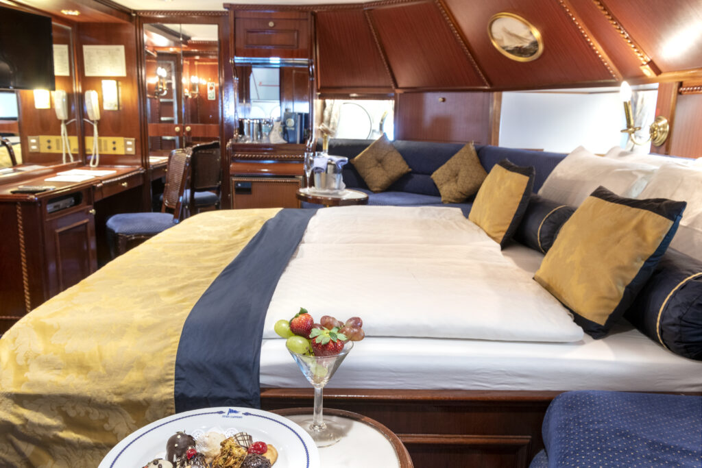Saviez-vous que le Ponant, fleuron de la compagnie du même nom, est le tout premier voilier estampillé Relais & Châteaux ? Et pour cause ! Le fameux trois mâts de la compagnie maritime a tout pour faire rêver les amateurs de croisières de luxe avec seize cabines et suites seulement, un vaste solarium pour siester sur des transats matelassés, de superbes salons aux couleurs des Cyclades, une piscine d’eau de mer, un espace de bien-être et même un restaurant gastronomique grand ouvert sur le large. 32 passagers maximum pour 33 membres d’équipage : autant vous dire que le service est aux petits soins et que tout a été pensé pour que les passagers profitent pleinement de leur navigation ! Une belle invitation à se ressourcer lors d’une croisière tropicale vers le Cap Vert ou les Caraïbes, avec des escales confidentielles, des pauses alanguies sur des plages de sable blanc, des excursions guidées par des passionnés et toutes sortes d’activités pour explorer les lagons.