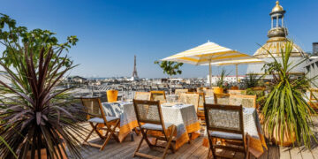 C’est déjà l’une des plus belles terrasses de Paris… Après 15 mois de travaux, Le Toit de la Tour profite pleinement de son premier printemps depuis son rooftop perché sur le quai de Tournelle. Les bosquets de fleurs blanches s’épanouissent sur cette élégante terrasse qui forme le prolongement azuré de l’expérience Tour d’Argent. A fleur de toits parisiens, elle ouvre une parenthèse au sommet, là où se dévoilent les plus beaux monuments de la capitale, avec comme voisine Notre-Dame, fidèle à la Tour depuis plus de quatre siècles… Tous les jours où le soleil brille, les convives sont invités à savourer du champagne de la Maison Roederer, à moins qu’ils ne préfèrent trinquer à la beauté de la ville avec un cocktail maison accompagné d’une terrine de canard Marco Polo de l’Epicerie Tour d’Argent. Un moment d’exception, les yeux dans la Seine… https://tourdargent.com/