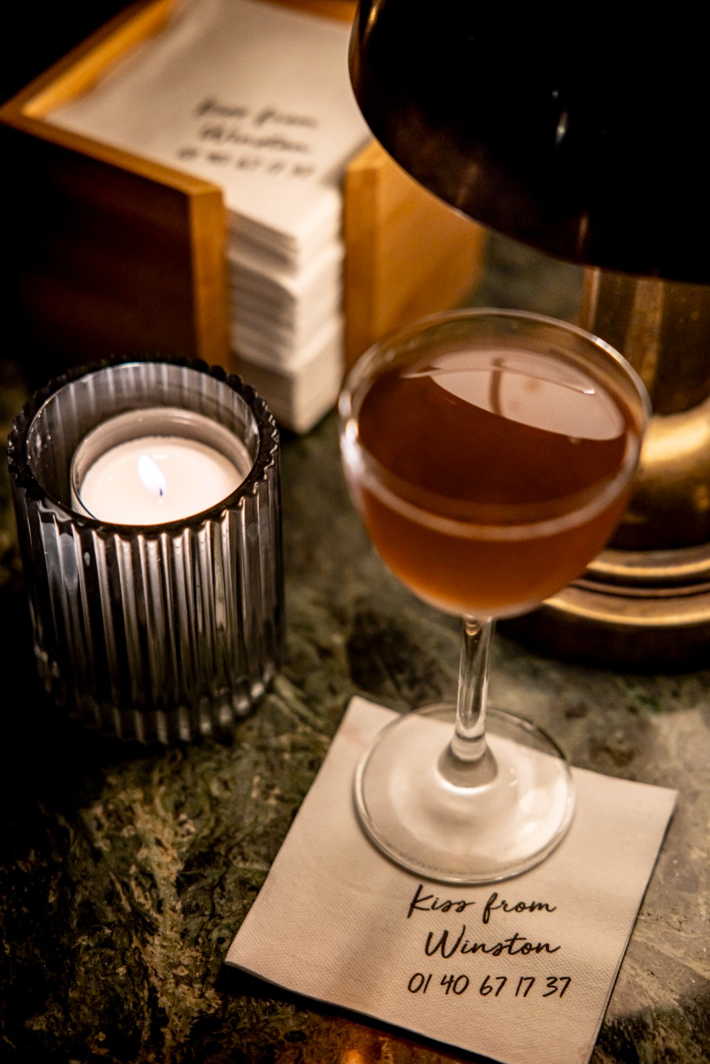 Également niché dans les profondeurs, mais cette fois dans le sous-sol du fameux Sir Winston, ce pub toujours bondé de la rue de Presbourg, voisine de l’Arc de Triomphe, le Doris Bar offre une ambiance feutrée aux allures d’Orient-Express stationné dans une gare indienne. Autant l’étage est blanc et décoré dans un style colonial britannique qui surprend quelque peu dans le Triangle d’Or, autant ce bar souterrain est laqué de noir et d’étoiles dorées, envoutant comme pouvait l’être Doris Delevingne, la sulfureuse amante de Churchill. Propice aux confidences, l’endroit propose un Dry January en association avec Botanical by Alfonse, un bar à cocktails namurois reconnu pour ses créations éphémères et sensorielles récompensées par 50 Best Discovery. A la carte de cette collaboration hivernale, vous trouverez le mocktail Purple, un mix étonnant de prune et de thé Oolong JNPR n°3 : à savourer intensément sous le plafond voûté du Doris Bar…
