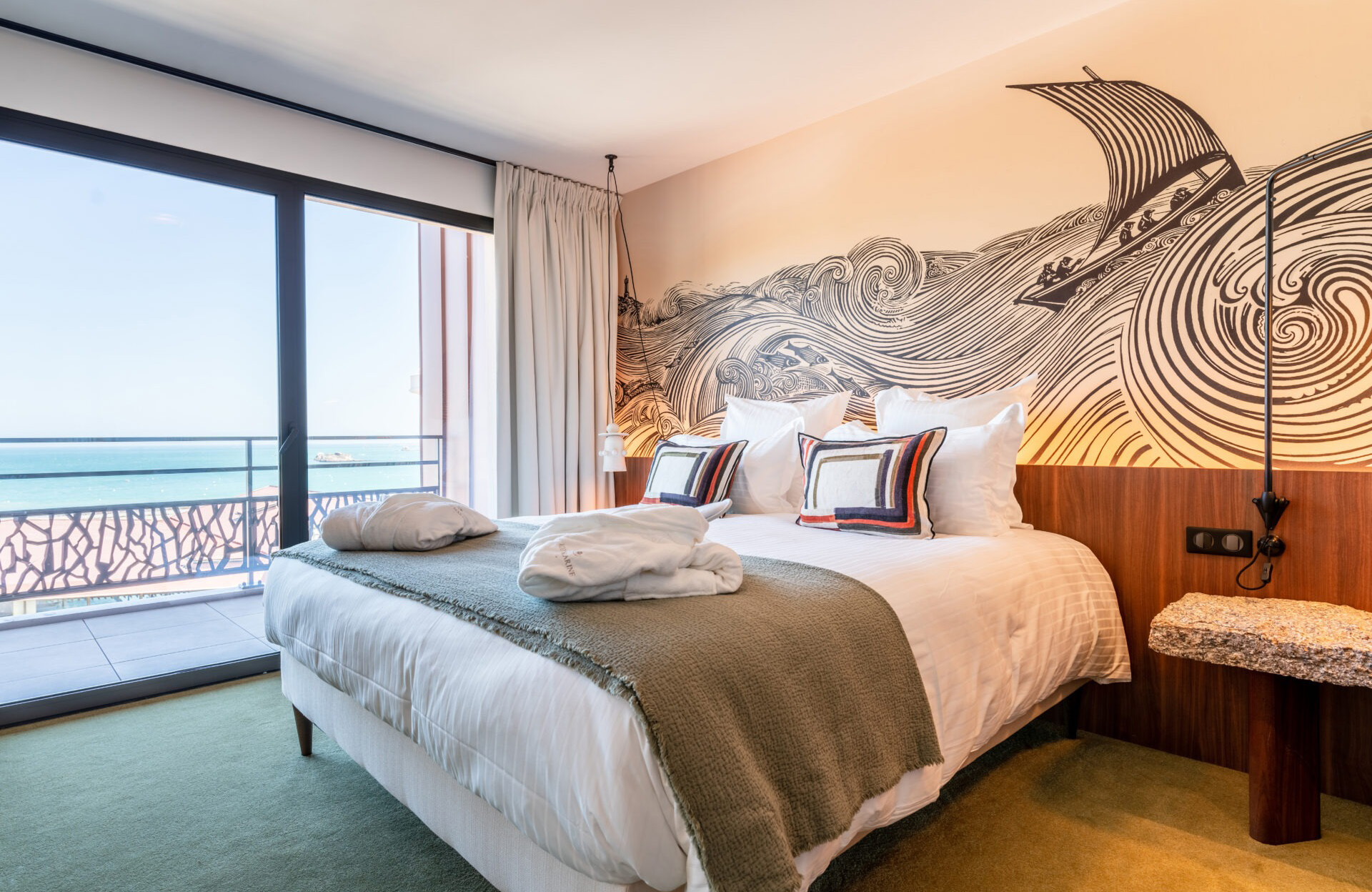 À deux pas de la plage de Trestraou, Roz Marine s’impose comme une escale bien-être d’exception sur le littoral nord de la Bretagne. Pensé comme un véritable cocon face à la mer, cet hôtel thalasso conjugue architecture contemporaine et enracinement local avec une justesse remarquable. Derrière ses lignes épurées, on retrouve l’âme de la région : la lumière changeante, la force du granit, la beauté brute du paysage. Chaque détail rend hommage à la Côte de Granit Rose, du mobilier inspiré à l’utilisation de matières naturelles, en passant par les fresques colorées évoquant l’univers poétique de Maurice Denis.