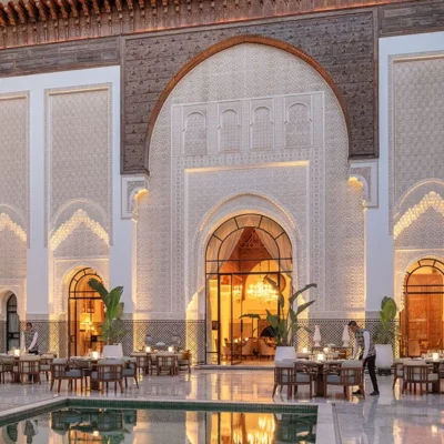 Et si vous viviez le Maroc en mode Oberoi ? Plongé dans la verdure parfumée d’un parc de vingt-huit hectares plantés de dattiers, d’agrumes et d’oliviers, ce resort de luxe propose toutes sortes d’expériences exclusives dans un cadre inspiré par le raffinement de la Medersa Ben Youssef, l’un des monuments historiques les plus célèbres de Marrakech. Des centaines d’artisans ont créé ce palais majestueux dont l’opulence évoque l’héritage hispano-mauresque des plus belles demeures d’antan. Table gastronomique, sublime spa déployé sur plus de 2 000 m² et conciergerie aux petits soins pour ses voyageurs… The Oberoi Marrakech est le havre rêvé des esthètes et des épicuriens, mais également des curieux qui souhaitent découvrir le pays autrement. Pour eux, le 5 étoiles s’est associé à l’agence Marrakech Insiders qui organise des virées en side-car vintage avec chauffeur. Ils proposent ainsi des promenades thématiques de 3 heures, ainsi que des excursions premium de 6 heures.