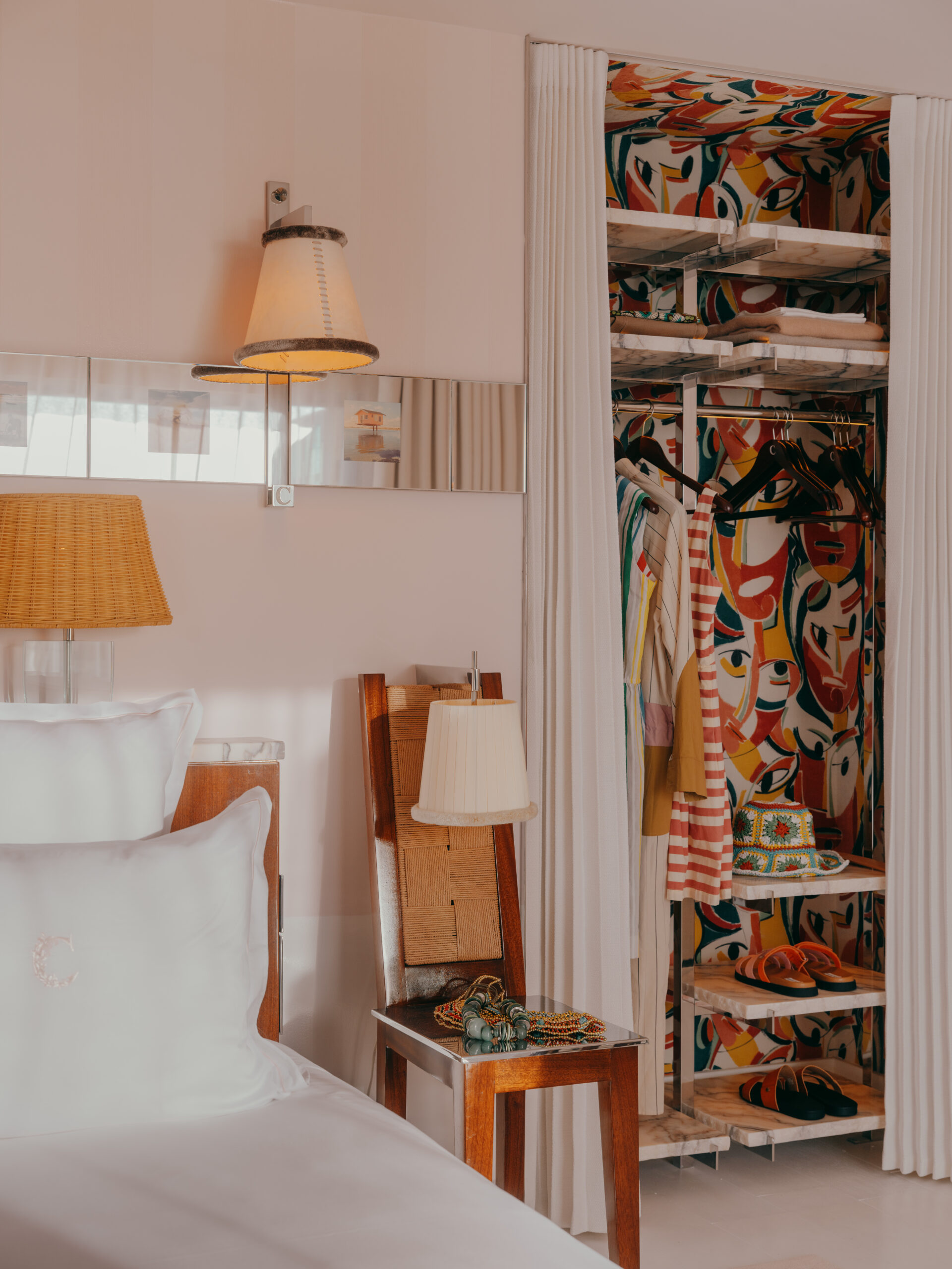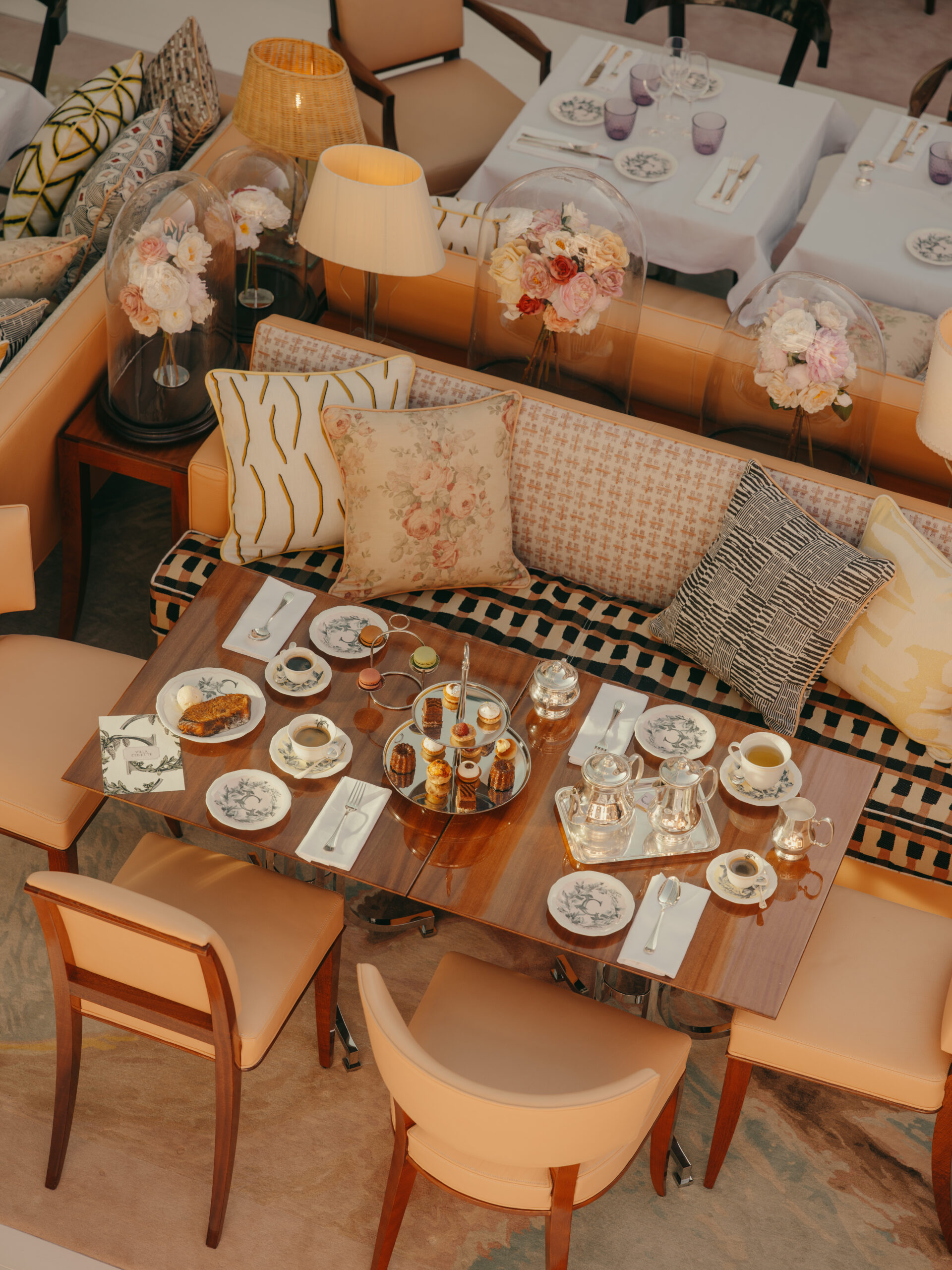 Tout l’esprit d’un bassin rêvé se reflète dans la Villa Colette, un 5 étoiles sophistiqué et mutin où le luxe de l’acajou verni et du marbre blanc souligne la simplicité chaleureuse du bois des pinèdes. Au cœur de l’hôtel, un restaurant rose-thé prolonge l’immersion ferretcapienne sous un toit verrière qui coulisse pour capter le soleil et le souffle du vent. Le décor est plein de surprises, entre galerie de miroirs et portraits dissimulés : de quoi amuser le regard en attendant les plats ciselés de Philippe Six qui sublime la pêche locale par des saveurs d’ailleurs.