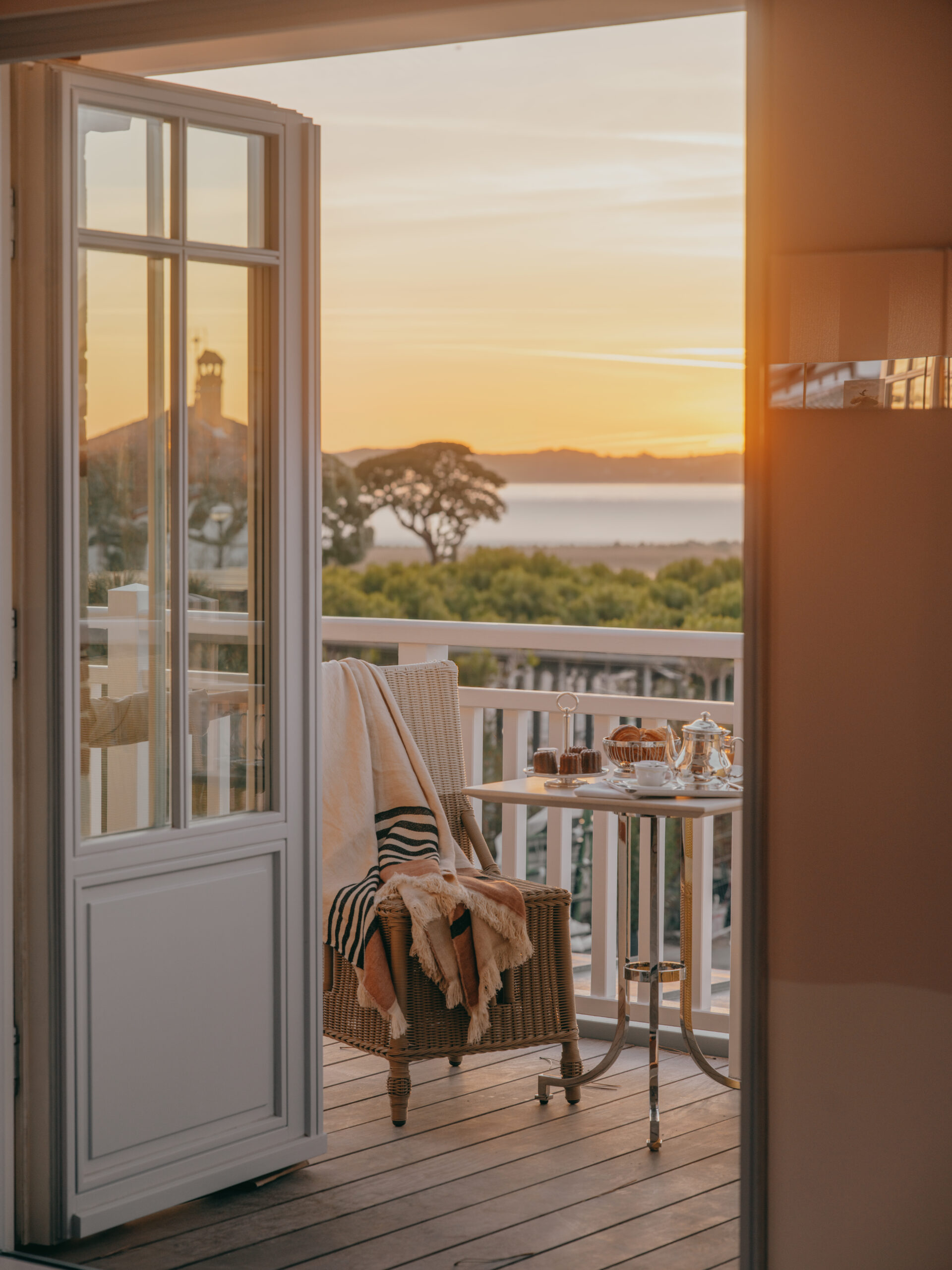Depuis longtemps, il cherchait un lieu pour créer un hôtel (il n’y en a qu’une douzaine entre Lège et l’extrémité du cap) et partager son bonheur de vivre dans ce bout du monde balnéaire. Une fois l’emplacement trouvé, au bord de l’eau, sur la place Walter, à l’angle du boulevard de la plage et de la rue des Mouettes, il n’a eu aucun mal à embarquer Starck dans l’aventure. Ensemble, ils ont imaginé une élégante villa néo-XIXe, une maison de famille solaire et joyeuse dont les 28 chambres et suites aux tons doux et poudrés s’inspirent du charme intemporel de ce village qui vit les pieds dans le sable et la tête dans les pins.