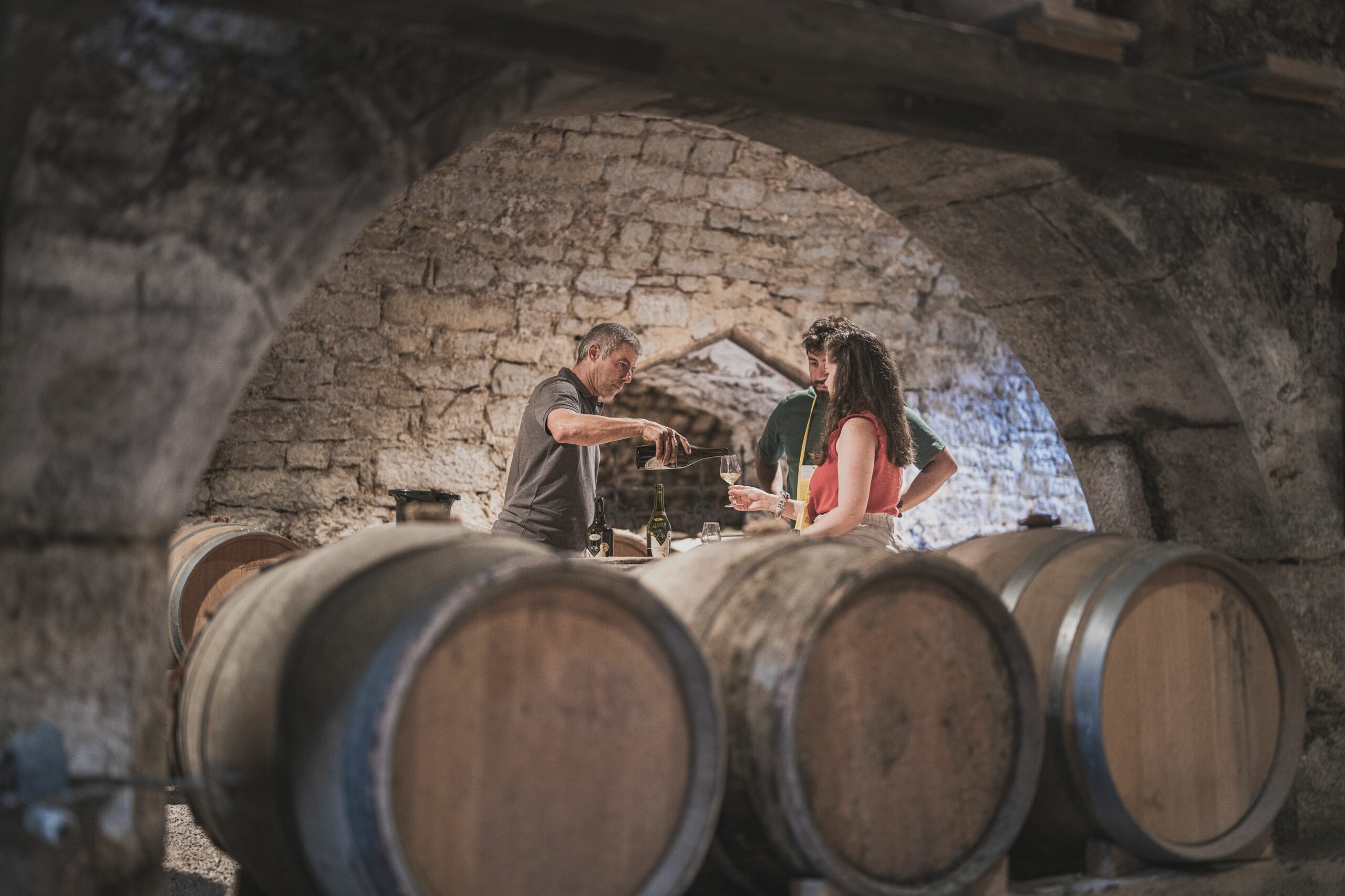 Mais si vous êtes venu dans le Jura, c’est tout de même pour goûter à des vins de la région ! Et c’est même encore mieux de comprendre comment on les fabrique ! C’est justement ce que proposent les frères Noir au sein de leur Domaine de la Petite Marne, un vignoble de 11 hectares situé aux abords de Poligny. Grands amoureux de la terre et respectueux du terroir, Philippe et Jean-Yves produisent toute une gamme de vins sous l’AOC Côte du Jura. Ils se sont engagés dans une démarche d’agriculture raisonnée, une histoire passionnante qu’ils partagent avec plaisir lors de la visite de leurs chais et de leur cave. Vous pourrez constater et apprécier le résultat de leur travail soigné lors d’une dégustation conviviale, histoire d’achever en beauté ce week-end de rêve dans les Montagnes du Jura !
